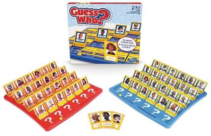 Guess Who? (Hver er maðurinn?) Þetta spil er byggt á klassískum spurningaleik sem líka er hægt að spila munnlega. Sem slíkur (eða á blaði) reynir leikurinn töluvert á rökhugsun. Þessi útgáfa er hins vegar einfaldari og er mjög vinsæl í þessu þægilega felligluggaformi. Krakkarnir hafa mjög gaman af því að fella niður glugga þeirra andlita sem ekki passa við vísbendingarnar sem hafa komið fram. Einfalt og mjög fljótspilað.