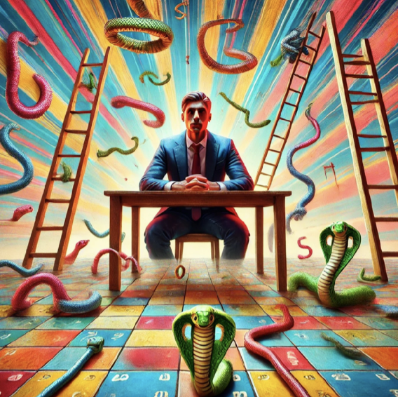 Í stað stiga og slanga eru eins konar “rúllettureitir”, hringlaga reitir þar sem hægt er að fara ýmist áfram eða aftur á bak með því að draga mislit spjöld (gul, rauð og græn). Þetta veldur því að staða keppenda getur sveiflast talsvert milli umferða. Spjöldin beina keppendum ýmist aftur á bak eða áfram, misjafnlega langt, og þeir geta því lent á öðrum “rúllettureit” og svo koll af kolli. Sumar umferðir geta orðið æði skrautlegar.